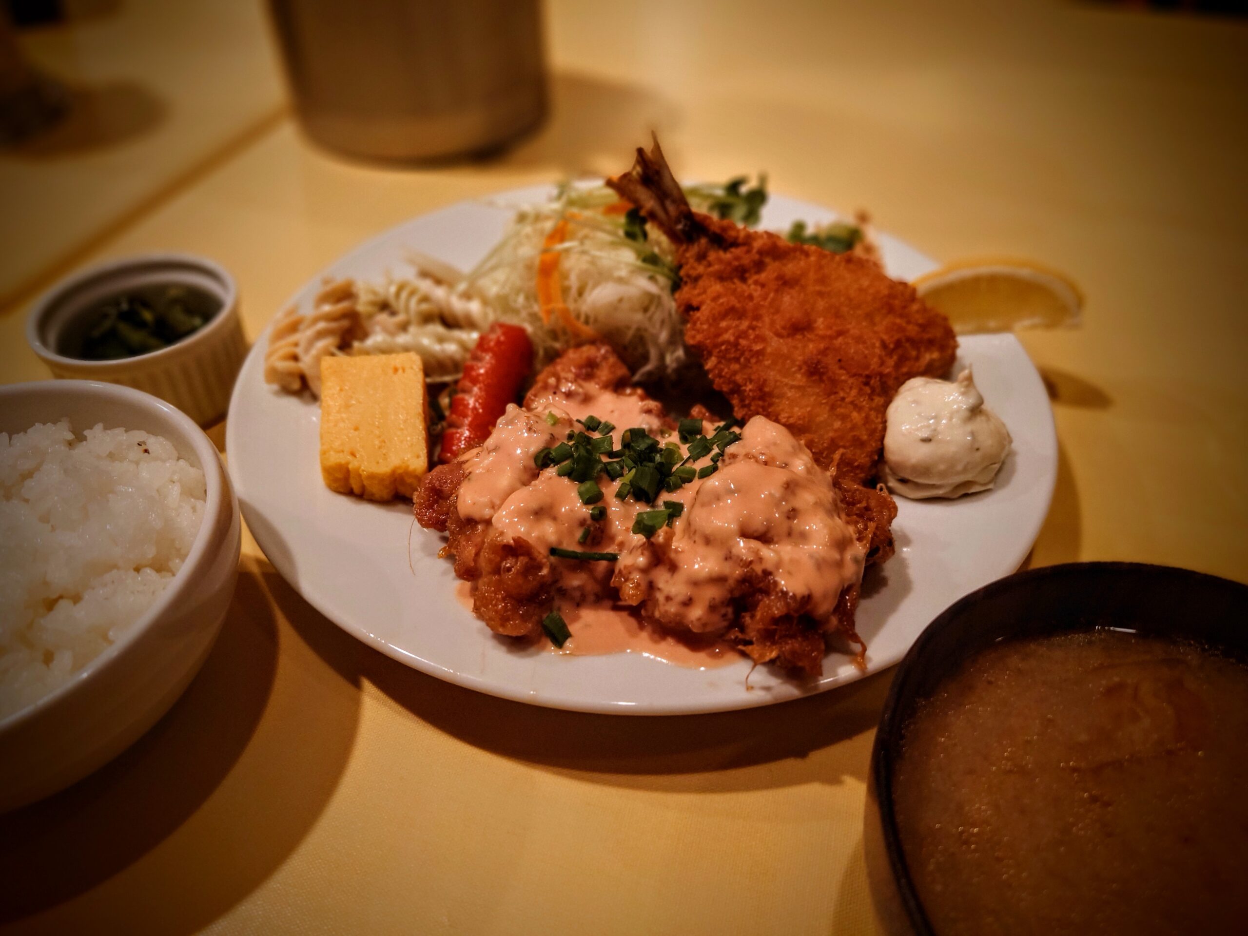 ということで、久しぶりにキッチンRさんにやってきました。たまに通りかかった時に寄ろうかなって思った時もあったんですけど、どういう訳かいつもclosedだったんです(笑)。でも、今回は大丈夫!ちゃんとXで確認してきましたから! ということで、少し前のマイアジフライブームもあったことから、チキン南蛮&アジフライ定食をいただきました。ちなみに、ごはんは小です(笑) 相変わらずの美味しさと満足感ですね! 絶対に部活終わりの学生さんとかに人気になると思うんですけど、どういう訳か、そういった集団にこのお店で会ったことは無いんですよね。おいらの中の七不思議です。また、お腹いっぱい食べたくなった時に来ようと思います。